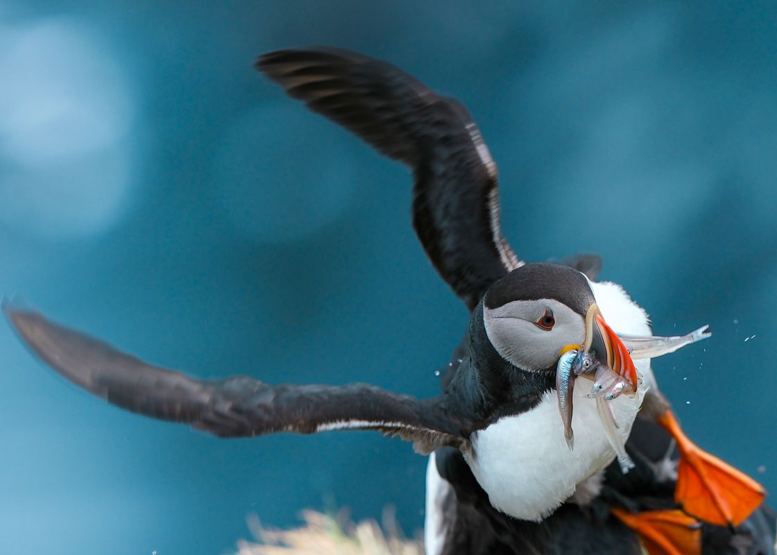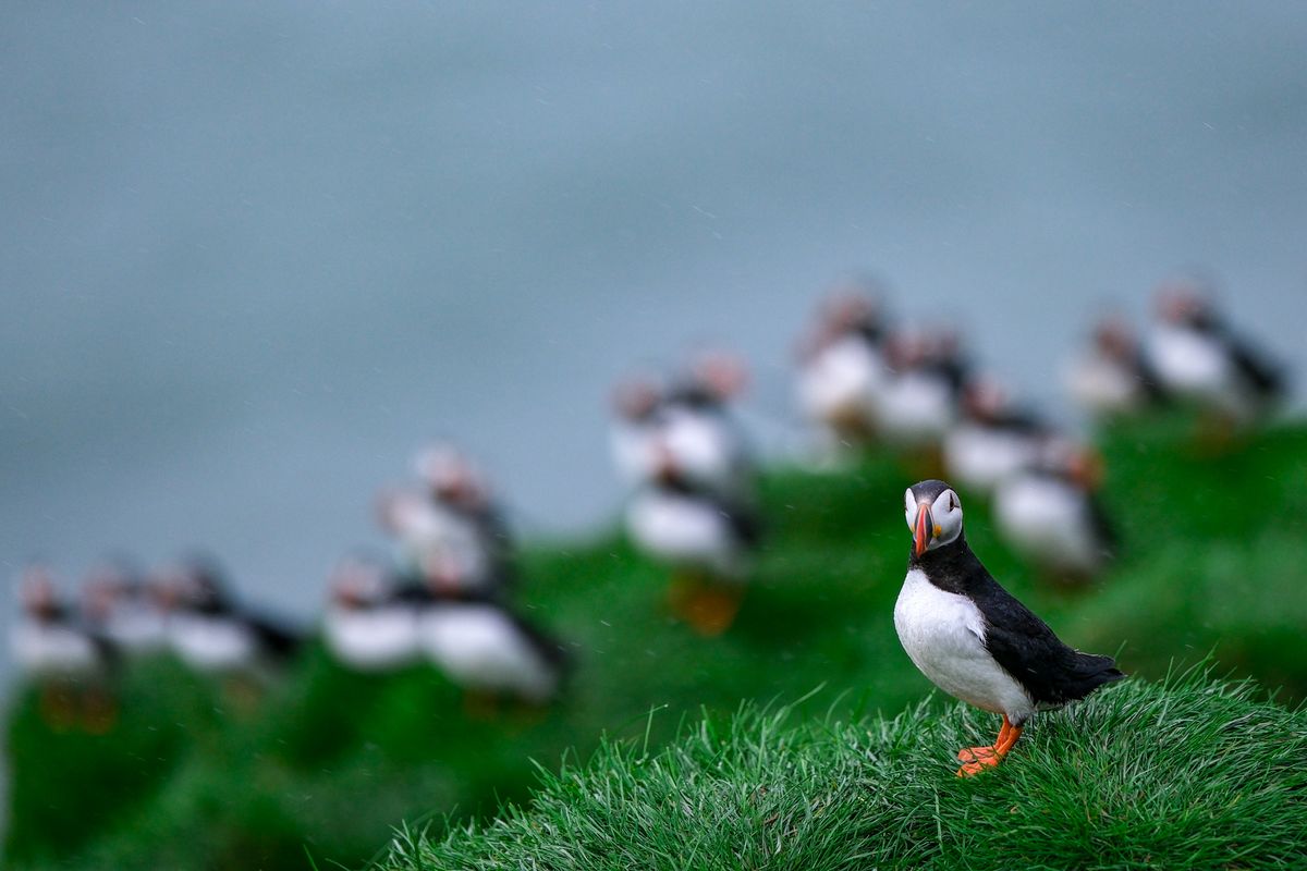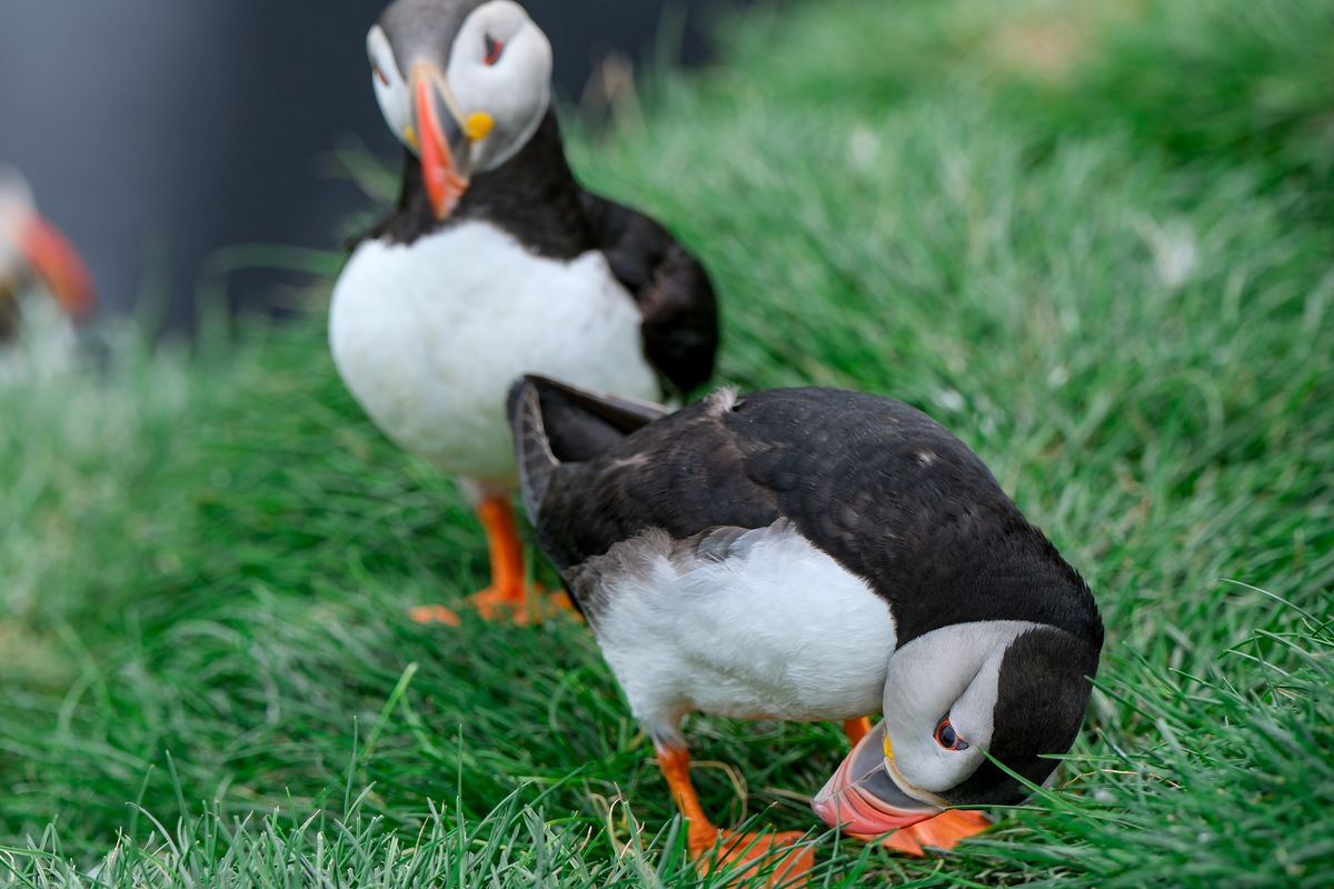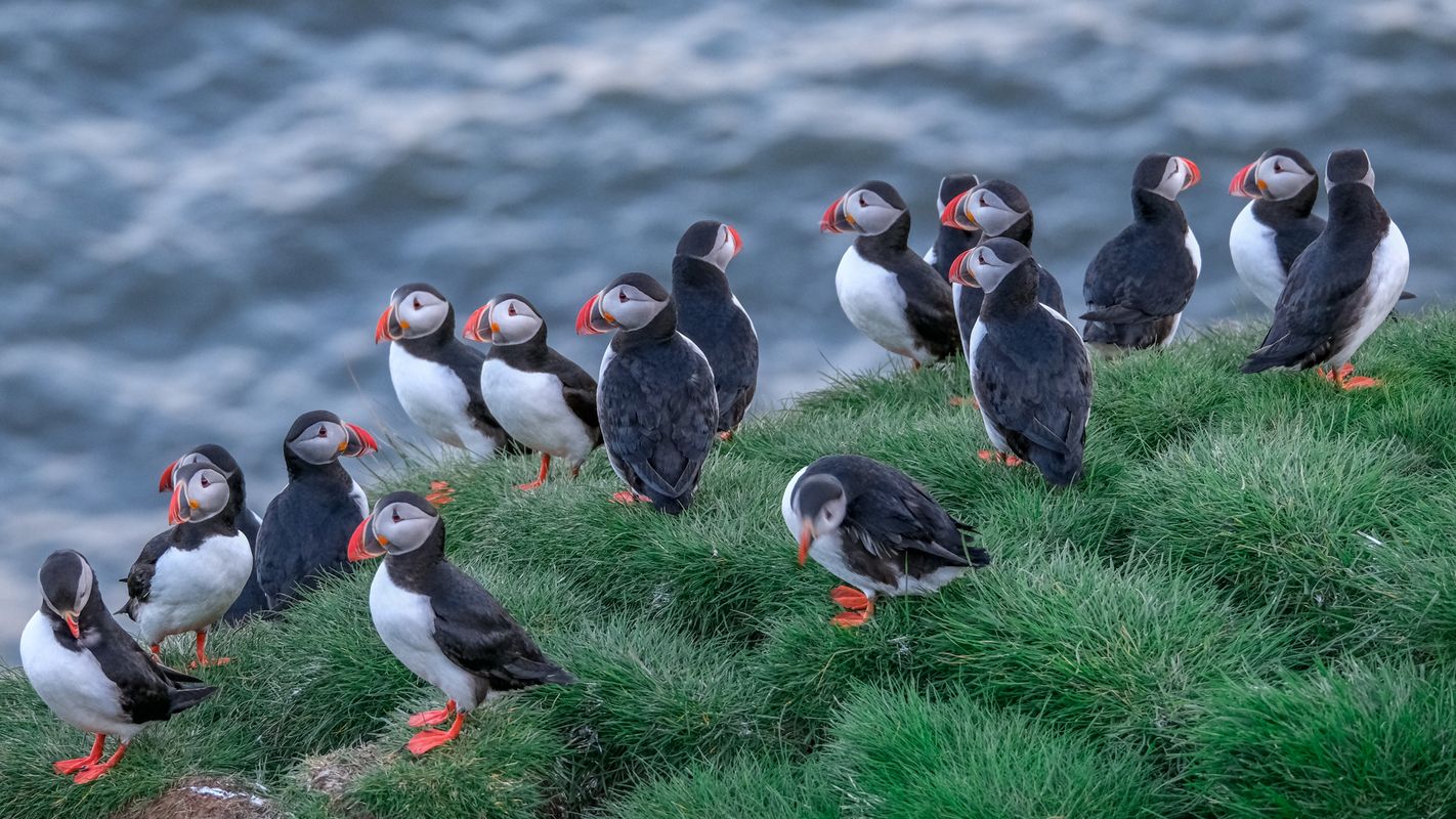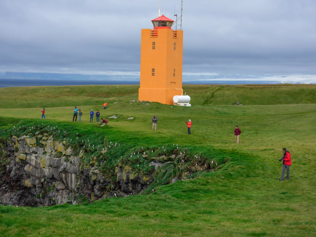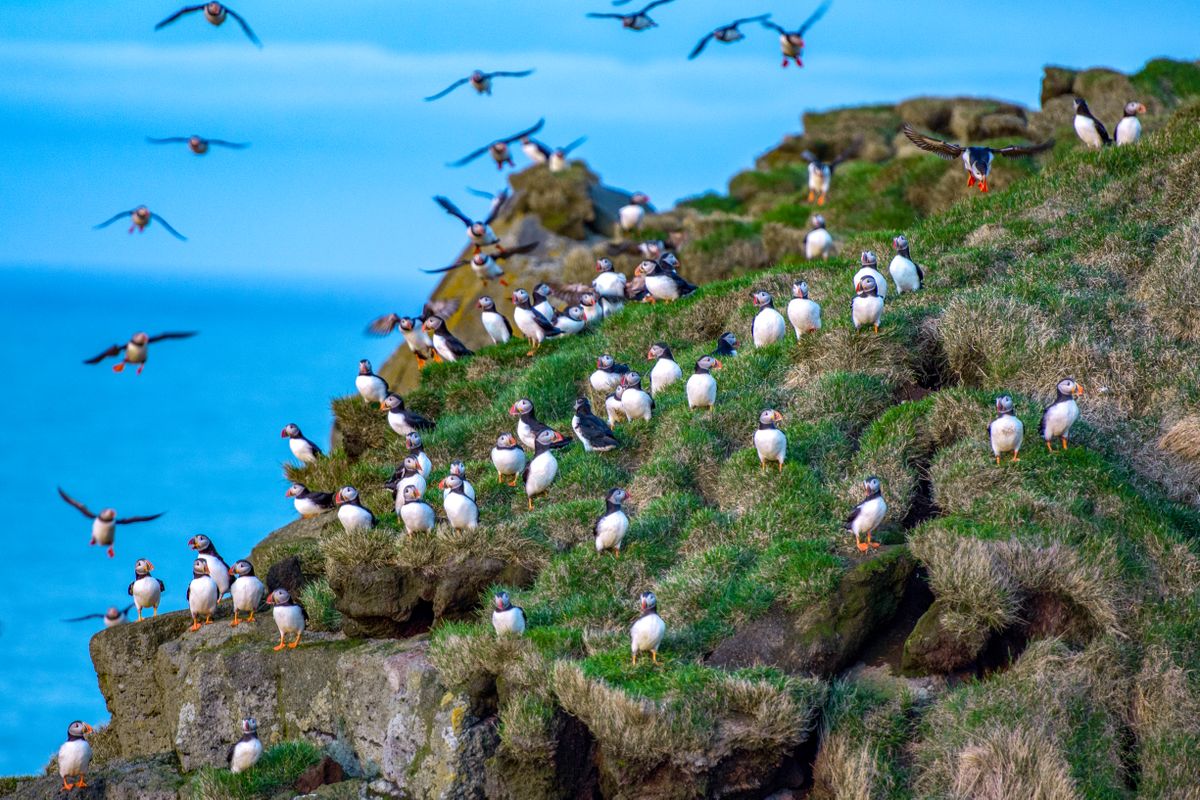In start and end of season the evening often provides the best chance to see the puffins close. The best time to visit puffin colony in hope of seeing lot of puffins in one trip is late June until early August. On the other hand we have quite a lot of days that we see hundreds of puffins even in May, or around mid June or August. In our experience the best puffin days are not the perfect sunny calm and hot days, but moderate wind, and even a little rain can often have more of them hang around the cliff edges. Late morning, early afternoon is often the best time for having many of them at home in the period mid June until early August. However we can never really know how many we will see on each given trip, there are many things that influence if the puffin wants to stay on the cliffs, or go down to the sea for the day. How close to the cape is the fish that they need to eat, how is the visibility in the sea for diving, how warm is it this afternoon, and what time of the summer is it are but few questions we need to consider. So even if we have 1000 puffins sitting around the cliff edges in one departure, the next departure on that same day might have only 10, or vice versa. Bottom line, the trip is in a nature reserve, not a zoo.