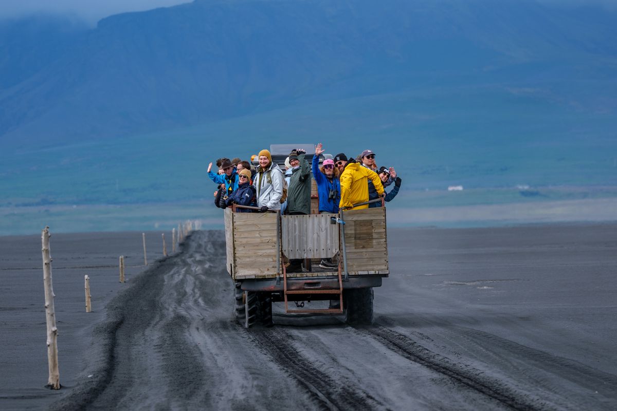 The tours to Ingólfshöfði have been conducted by the family in Hofsnes farm since 1990 when Sigurður Bjarnason had given up traditional sheep farming and needed to find new ways to make a living on his farm, offering tours down to Ingólfshöfði using his tractor and hay cart. His son Einar Rúnar Sigurðsson started to help his father soon, and then Einar’s wife, Matthildur Þorsteinsdóttir, and their oldest son Aron Franklín. Today the trip is normally done by Einar or Matthildur (Matta) or their sons, Ísak and Matthías.