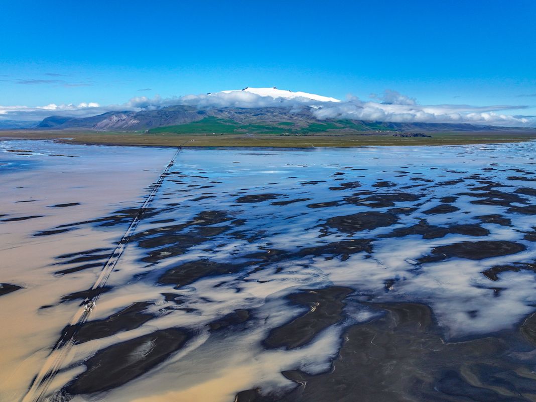 Cape Ingolfshofdi is an isolated headland on the coast half way between Skaftafell in Vatnajokull National Park and Jökulsárlón ice lagoon. This historical nature reserve is home of thousands of nesting seabirds, like puffins and great skuas, guillemots and razorbills, fulmars and kittiwakes. The cape is named after the first settler of Iceland, Ingolfur Arnarson, who spent his first winter in Iceland there in the year 874 AD. To get to Ingólfshöfði we cross 7 km of waters, marshes and sands in a tractor-drawn hay cart. The drive across Hofsnes Sand Flats takes about 30 minutes each way, so we spend about 1 1/2 hour hiking around the cape.